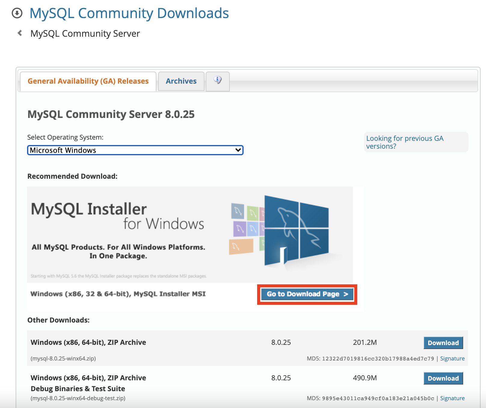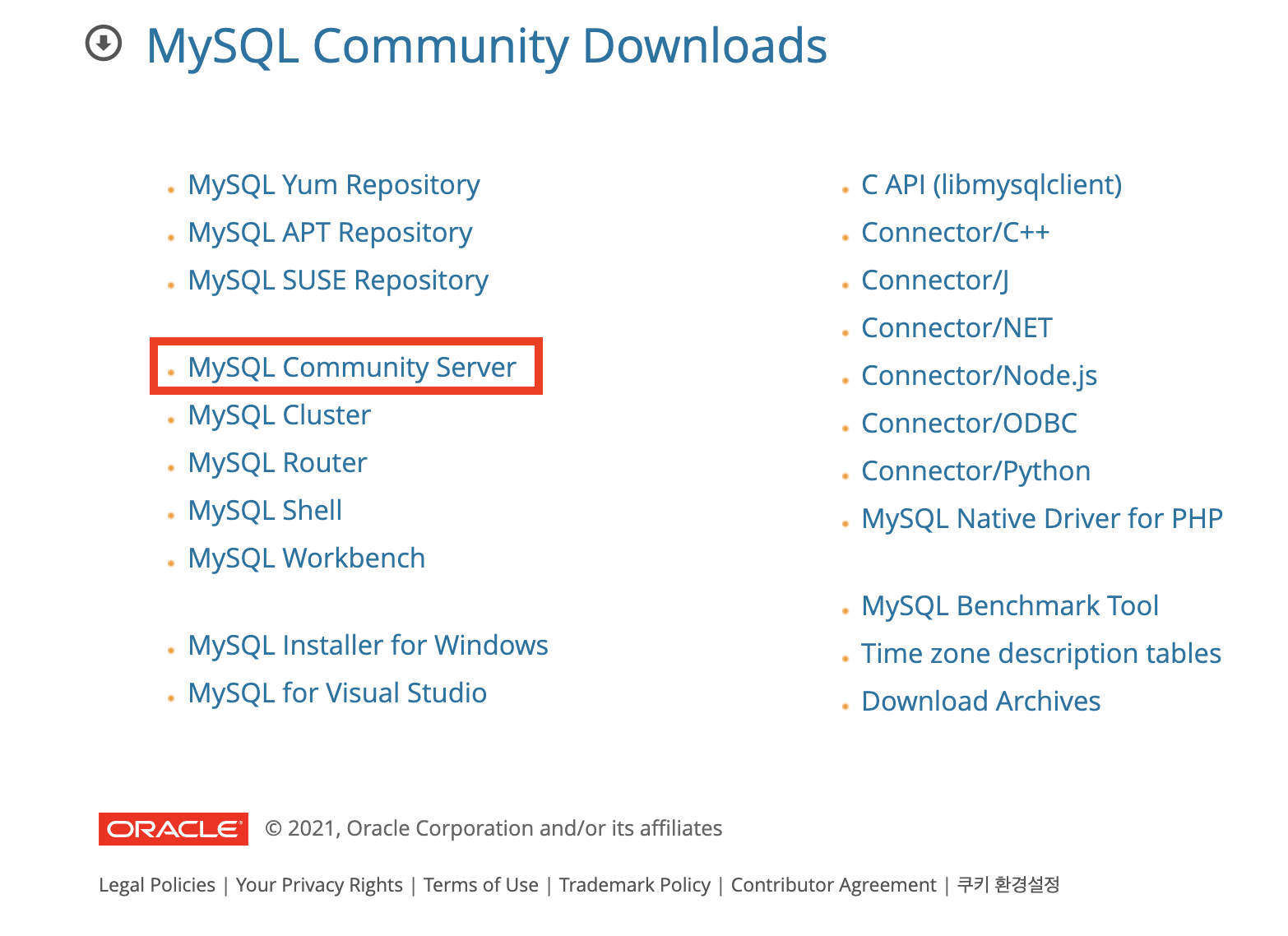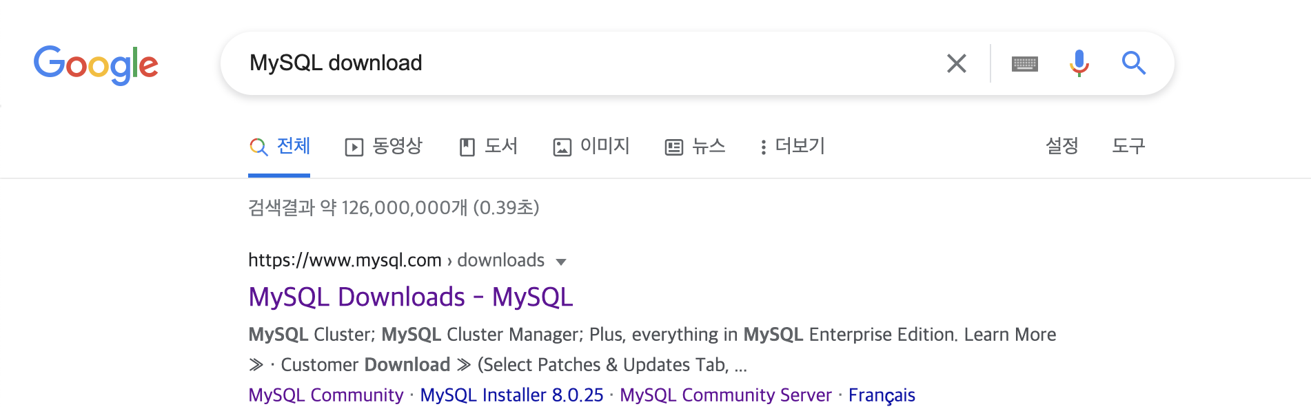 1) 검색창에 'MySQL download' 검색 후 mysql 사이트 클릭
