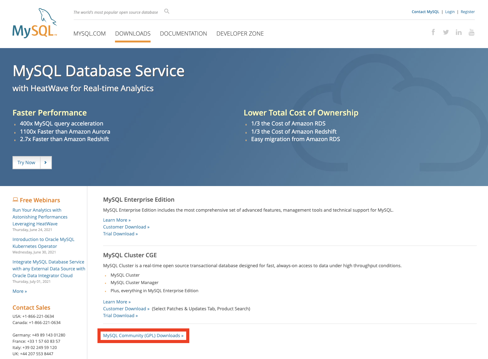2) 다운로드 메인화면 하단에 MySQL Community (GPL) Downloads » 클릭